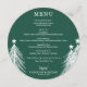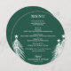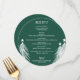 An elegant emerald green round dinner menu with white Christmas trees features your menu details in chic lettering. Perfect for a holiday Christmas party or any special event with a sit down dinner.