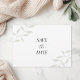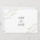 Custom-designed wedding save the date card featuring modern type with elegant foliage.