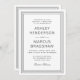 A simple elegant triple border frame surrounds your wedding invitation text in classic style. This versatile choice in wedding invitations is shown here in white with dark charcoal grey text in a contemporary type face. Personalise with your wedding details.