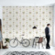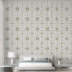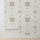 Elegant and chic silver and gold folk tile pattern peel and stick wallpaper adds a simple and stylish winter botanical print to your neutral home decor.