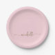 Simple Elegant Gold Monogram Script Blush Pink Paper Plate