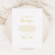This simple elegant gold thank you reception card is perfect for your modern minimalist white and gold wedding. The design features minimal contemporary gold font accompanied by formal calligraphy. Keep it as is, or choose to personalise it with your own artwork or photos!