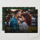 This beautiful holiday photo card features stylish, modern typography on the bottom, reading, "Happy Holidays" in real gold foil. A dark gradient overlay allows the text to stand out against any photo. The back of the card contains a hand drawn floral and greenery pattern in traditional colours of red, green, and ivory over a dark green background (background colour can be customised, if desired).