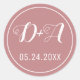 Simple, elegant initials dusty rose pink wedding classic round sticker