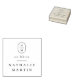A simple personalised book stamp design with your initials in a rounded frame. Below, "ex libris" is printed in classic serif typography, followed by a chic horizontal line divider, and your name in capital letters. This is the wooden rubber stamp - choose the handle and ink pad options according to your preference! A self-inking version of this stamp is available in my store. View the collection linked on this page or visit our store for more custom book stamps.