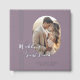 A uniquely elegant wedding guest book with real white gold foil (silver) and modern styling on a popular dusty purple background. The design features an oval photo template for including your selected photo. Wedding Guest Book text is spelled out in modern script typography and is accented with simple line graphics. Personalise the text template with your names and wedding date. The spine of this guest book also has a text template to personalise as you like. You can choose between 3 shades of gold foil: silver (shown here); gold, or rose gold.