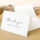 This simply elegant thank you card features 'thank you' is a chic modern script in black and it works wonderfully with a variety of occasions! This element of the design cannot be altered. But we also have a gold version offered separately. You can change the colour or font or size of any of the other text. We've chosen black as the default setting for the other text on the front and inside the card. We've put some placeholder text on the bottom inside flap for you to replace with your message. But please don't feel restricted by this. If you prefer to make the inside totally blank so that you can write a handwritten note inside each card instead, you can do that. Just please be sure in any case to delete our sample/placeholder text on the front and inside! We have not picked a default colour for the background on the front or inside. Instead, the default as transparent to simply let the tone of the paper itself serve as the base colour. You can change this by picking a colour in the editing tools if you'd like. We've chosen matte rather than semi-gloss as the default paper choice, as it is well suited to writing your own message on and won't smudge. But you can change this if you prefer. We hope you'll enjoy experimenting with various aspects of this card's appearance and make it uniquely yours with the intuitive design tools. We also offer this design in a flat card format, and we have other 'thank you' designs with a similar sensibility, so please check our store for more inspirations!