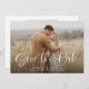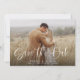 Simple Elegant Modern Calligraphy Script QR Code Save the Date features a full photo, topped with a white overlay of modern calligraphy and your wedding details.