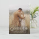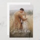 Simple Elegant Modern Calligraphy Script QR Code Save the Date features a full photo, topped with a white overlay of modern calligraphy and your wedding details.
