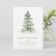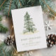 This simple, modern Christmas card features an elegant original snowy watercolor painted Christmas tree at the top. Enter your family name and first names. The back has a rustic white washed wood design.