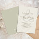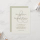 This design features a wedding sage green invitation, with a simple elegant style, a minimal ampersand design, with a formal trendy classic layout. a modern, minimalist typography, with a traditional light ivory cream front, as well as a solid colour and monogram on the backside.