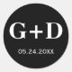 Simple, elegant monogram black and white wedding wedding sticker. It displays your initial and the date of your wedding in white on black.