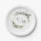 Simple elegant monogram eucalyptus paper plate