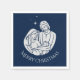 Celebrate the joy and true meaning of Christmas this holiday with these simple and elegant blue Christmas paper napkins. This design features a dark blue background with an outline of the baby Jesus with the Virgin Mary and Joseph. There are three stars in the background.