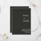 this modern save the date card is the perfect way to let friends and family know about your wedding date. features simple fonts giving clean lines that look stylish and modern.