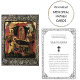 Elegant black scroll frame with an icon of the Dormition of the Theotokos (Virgin Mary) on the front Orthodox Christian funeral prayer card. This customised card can be given at the funeral liturgy or sent as a special tribute to those who were unable to attend. Personalise with all of your details and preferences, including text, font / size / placement.