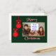 This easy to personalise Merry Christmas post card is accented with two Christmas tree ornaments on a dark green background to the left of your image. Change the colour and style of the type in your text in the message box on the other side. Postage is ridiculously expensive - postcards are less expensive to buy AND to mail!