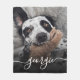 Custom pet photo blankets with your text offer a cosy and heartwarming way to celebrate your furry friend. This personalised blanket design features a full-photo layout, making your pet the star of the show, paired with an elegant script name overlay for a stylish and loving touch. Ideal for dog lovers, pet parents, or as a thoughtful gift for pet memorials or birthdays, this design turns your favourite photo into a functional keepsake. Whether draped over a couch or used for cuddling, this custom blanket is a beautiful way to keep your beloved pet close and cherished every day.
