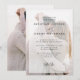 This simple, minimalist modern wedding invitation features classic black serif font text overlay on a rectangular white screen over your favourite background photo, with selected words and phrases in stylish handwriting calligraphy. The same photo appears on the back of the invitation without the white screen.