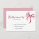 Elegant pink bow RSVP card with a minimalist design. With a beautiful hand drawn pink bow and handwritten typography, this RSVP card is perfect to go with your quinceanera, sweet sixteen and baby shower invitations. Coordinated invitations are available in my store. Illustrated and designed by Patricia Alvarez.