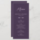 This modern, minimalist fall wedding reception menu card offers a simple clean layout on a dark purple background. The design offers space for you to add your wedding reception menu items along with the names of the bride and groom and their wedding date.