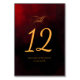 Illuminate your wedding venue with a taste of dark romance and vintage charm with our Elegant Custom Wedding Table Numbers. Crafted with intricate gold script on a striking black backdrop, each table number is accentuated by an underlay of vibrant dark red hue. Perfect for a fall wedding, the striking contrast between gold, black, and dark red effortlessly invokes a romantic aesthetic while maintaining a sophisticated elegance. Each table number is custom designed with love and expertise by Mylini Design, a seasoned designer known for delivering remarkable quality. Get your hands on these wedding table numbers and let their vintage aura set the mood for your special day. The meticulous attention to detail in these table numbers truly sets them apart. Witness the beautiful combination of elegance and dark romance come alive at your wedding. Buy now and let these unique table numbers make your special occasion unforgettable! - Elegant, Custom, Black and Red, Table Number, Mylini Design, exclusive wedding decor