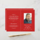 Modern funeral program / funeral pamphlet featuring a simple yet elegant design. The front includes a photo of the deceased along with their name, birth and death dates. The inside has a second picture along with two headers and two templates for the obituary and order of service. The colour palette is red and may be changed in the design editing tool. This program can be used for a funeral, memorial service or celebration of life. PLEASE NOTE: The default paper option selected is "matte" and it's the best option if you are ordering this as a folded program.