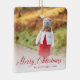 Modern typography square photo ornament featuring a simple design with "Merry Christmas" in an elegant red script along with your family name and year over your favorite full bleed picture. Add the same photo to both sides or a different one on each side. Give this ornament as a gift for loved ones or keep for yourself.