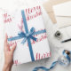Cute holiday wrapping paper featuring modern typography and a simple design with "Merry Christmas" in an elegant red script. This wrapping paper is sure to add a festive touch to your Christmas gifts.