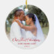 Modern typography photo ornament featuring a simple design with "Our First Christmas as Mr. and Mrs." in an elegant red script along with your last name and year over your favorite wedding picture. Add the same photo to both sides or a different one on each side. Give this ornament to a newlywed couple for their first Christmas or just keep for yourself.