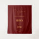 Simple Elegant Red Welcome Script Wedding Backdrop Banner. A dark red banner with a sleek and stylish design that features a scripted "Welcome" message. Simple design with trendy script and fonts. Personalise all the text on the banner, including the bride and groom's names and the wedding date.