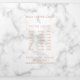 Elegant trifold brochure featuring text in faux rose gold over a marble background. The front has your business name with swashes in a handwritten script calligraphy. The back panel has your hours of operation and contact information. The inner fold panel has two headers and text boxes. The inside has multiple templates for information about your business on the outer panels and a price list in the middle panel. This simple and feminine design is great for a makeup artist, hair stylist, lashes technician, beauty / nail salon or any woman owned business.