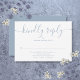 A simple elegant dusty blue signature script RSVP card with your details set in chic typography. Designed by Thisisnotme©