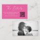 Simple Minimalist Hot Pink Modern Script Lettering Details on our Website Enclosure Card with QR Code and Couple Photo