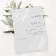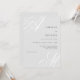 Traditional goes modern with this simple minimal wedding invitation featuring beautiful calligraphy script monograms of the bride and groom on alternate corners. A neat text layout displays the details of your wedding with a clean classic look with pale grey initials and black text over a white background. Replace the sample text with your information. You may move your initials slightly left or right, up or down to accommodate their best display in this design format. The monograms look best when they run slightly off the edges. Change any wording on the invitation to suit your personal style and preferences.