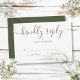 A simple elegant olive green signature script RSVP card with your details set in chic typography. Designed by Thisisnotme©