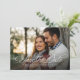 Share the news of your engagement and upcoming marriage with this one-photo horizontal save the date card featuring an elegant type treatment in white that sits at the bottom of a horizontal photo. The type has room for long names, plus location date and other information for friends and family like a website. The back is a neutral shade with a subtle texture pattern with room for a second photo. The colour can be adjusted by clicking "Customise."