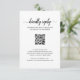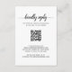 Simple black and white Wedding RSVP card with the words, "kindly reply" in an elegant script with swashes. Below is your QR code and instructions. The back has your favourite photo. This modern and minimalist RSVP card coordinates with any style of wedding invitation suite.