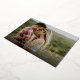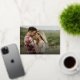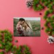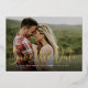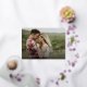 With a single horizontal photo and a classic script "save the date" in foil, this card is the perfect way to announce your engagement and upcoming wedding to friends and family. The text is bold and sophisticated. The customisable text on the front has room for names, date, location and other information like a wedding website. The back is a neutral black and white striped pattern. The colour is editable by clicking "Customise."