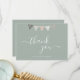 Modern elegant script sage green baby thank you card featuring watercolour bunting.