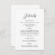This wedding details card has a clean and elegant design with black text on a white background. A mix of script and serif fonts adds a touch of sophistication, while the layout is neatly organised into sections for easy reading.