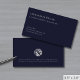 Make a lasting impression with our Simple Elegant Silver Logo Business Cards featuring elegant serif typography on a rich navy blue background. The back features a striking silver geometric emblem that can be replaced with your logo, along with space for an industry disclaimer. Perfect for business professionals looking to make a lasting impression.