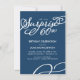 This modern and elegant 4.5'" x 6.25" surprise 60th birthday party invitation features the words "surprise 60th" in white script font with a matching swirling design in the bottom right corner. Customise this trendy invite with the name and party info and any background colour of your choice.
