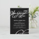 This modern and elegant 4.5'" x 6.25" surprise 90th birthday party invitation features the words "surprise 90th" in white script font with a matching swirling design in the bottom right corner. Customise this trendy invite with the name and party info and any background colour of your choice.
