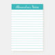 Simple Elegant Teal Lined Personalised Post-it Notes