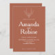 This simple and elegant terracotta wedding invitation features a clean, modern serif font and a delicate white botanical illustration. Designed with minimalism in mind, it offers a sophisticated touch for contemporary weddings, fall celebrations, or nature-inspired themes.