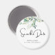 Elegant and stylish white script Save The Date Magnetic Invitation. Perfect for weddings, birthdays, graduations, and other events.