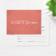 Elegant minimalist gift certificate card for beauty or fashion related professionals. Simple chic design with texture rose background.