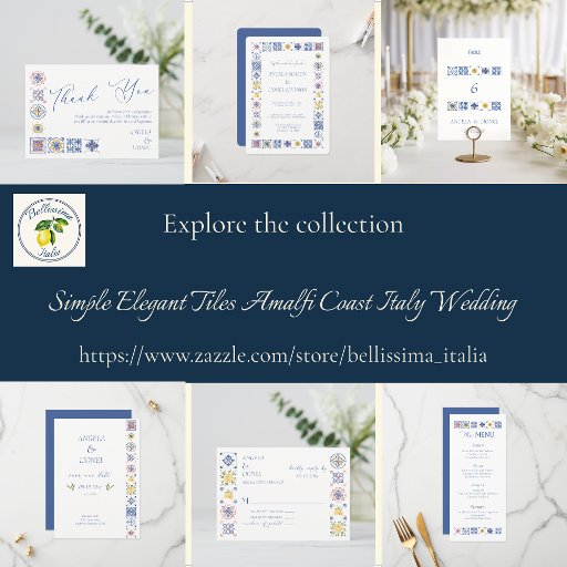 Simple Elegant Tiles Amalfi Coast Italy Wedding RSVP Card