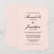 This simple yet classic wedding invitation features an elegant combination of fonts on a pale blush pink background. This wedding invitation is timeless and will work with any wedding theme. Customise the background colour to match your wedding colours.